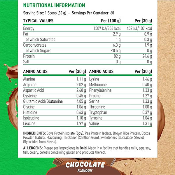 • Plant-based protein blend (soy, pea, rice)